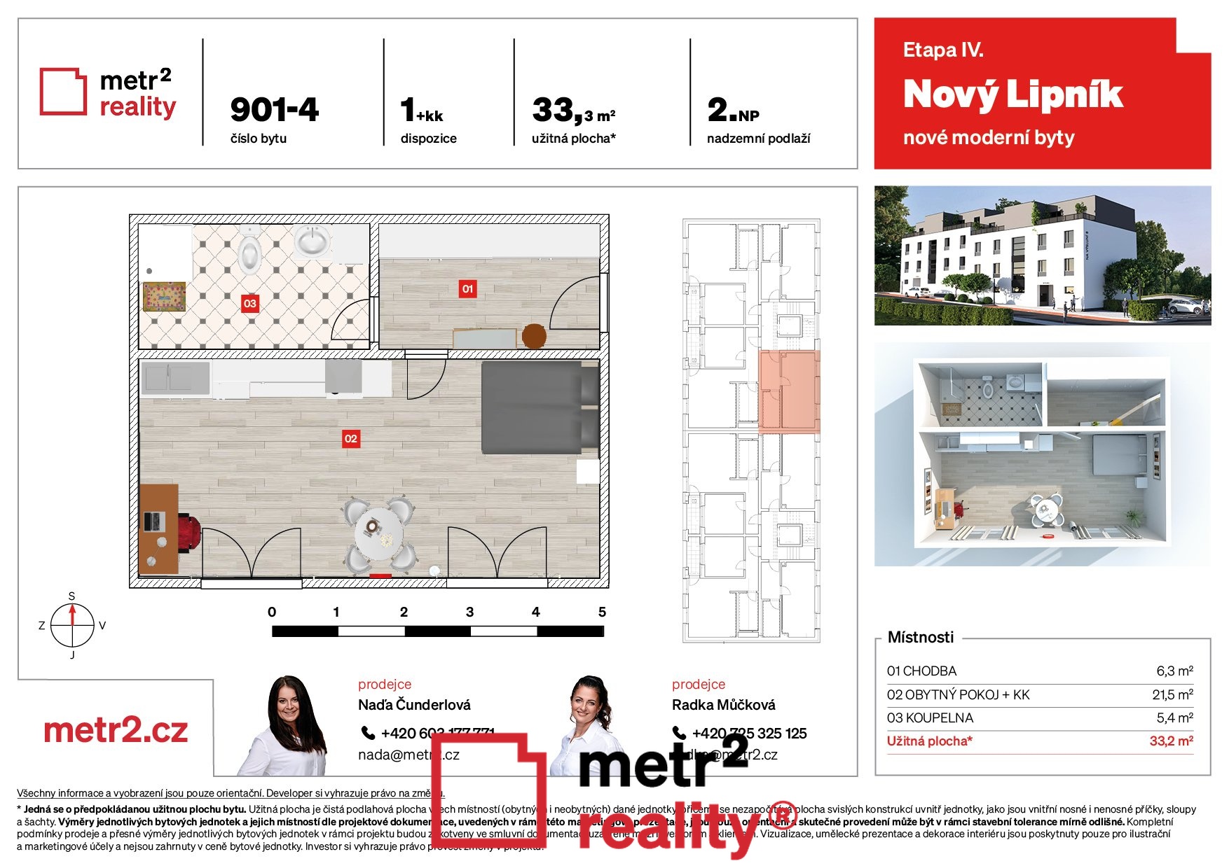 Ve výhradním zastoupení si Vám dovolujeme nabídnout bytovou jednotku v aktuálně rozestavěném bytovém domě s označením SO900 v rámci poslední, čtvrté etapy developerského projektu Nový Lipník. Jednotka s označením SO901-4 o dispozici 1+kk se nachází ve II. NP bytového domu s výtahem. Byt má výměru 33,29 m2. V ceně je zahrnuta dokončená bytová jednotka na klíč ve standardním provedení včetně sklepní kóje v přízemí domu o výměře 1,3 m2, vyjma kuchyňské linky. K bytu je možno dokoupit venkovní parkovací stání za cenu 249 000,- Kč. Datum dokončení bytů a kolaudace je jaro 2026. Bližší informace Vám rádi poskytneme v naší RK.