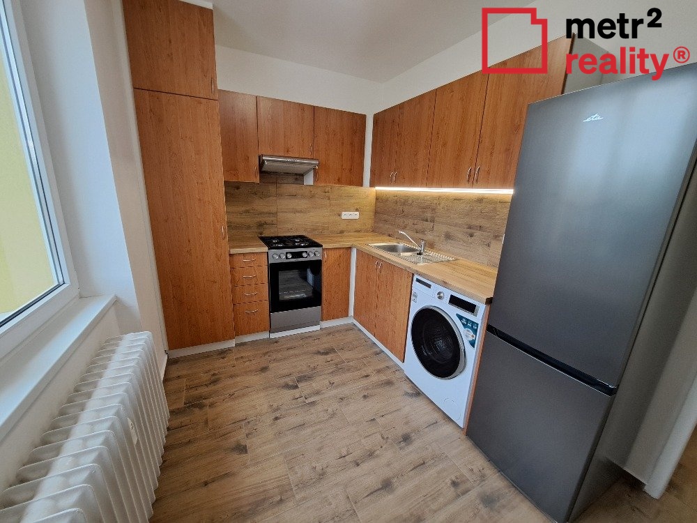 Pronájem kompletně zrekonstruovaného nezařízeného bytu 2+1 v Uničově na ulici Nerudova. Byt se nachází ve 4. patře cihlového domu bez výtahu a jeho výměra činí 53 m2. Byt má zděné koupelnové jádro s vanou, samostatné wc, v pokojích zrekonstruované parkety a je vybaven novou kuchyňskou linkou s kombinovaným sporákem, novou lednicí s mrazákem a novou pračkou. Cena je uvedena bez záloh na služby a energie (4.500,- Kč / měsíc). Jistota ve výši dvou měsíčních nájmů. K bytu náleží dva sklepy v suterénu domu. Bezproblémové parkování. Byt je volný ihned. PENB nedodán, z tohoto důvodu uváděna en.tř. G.