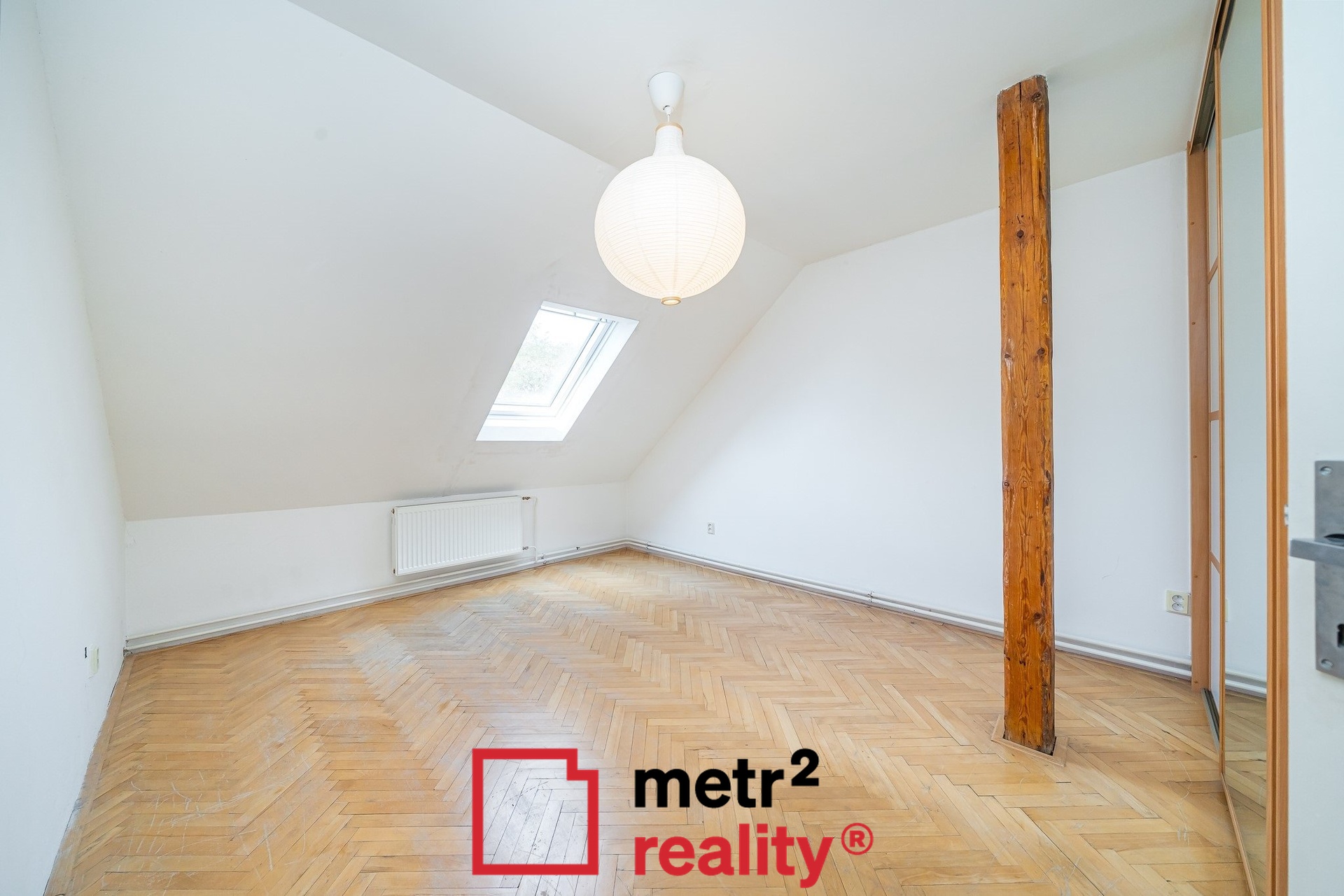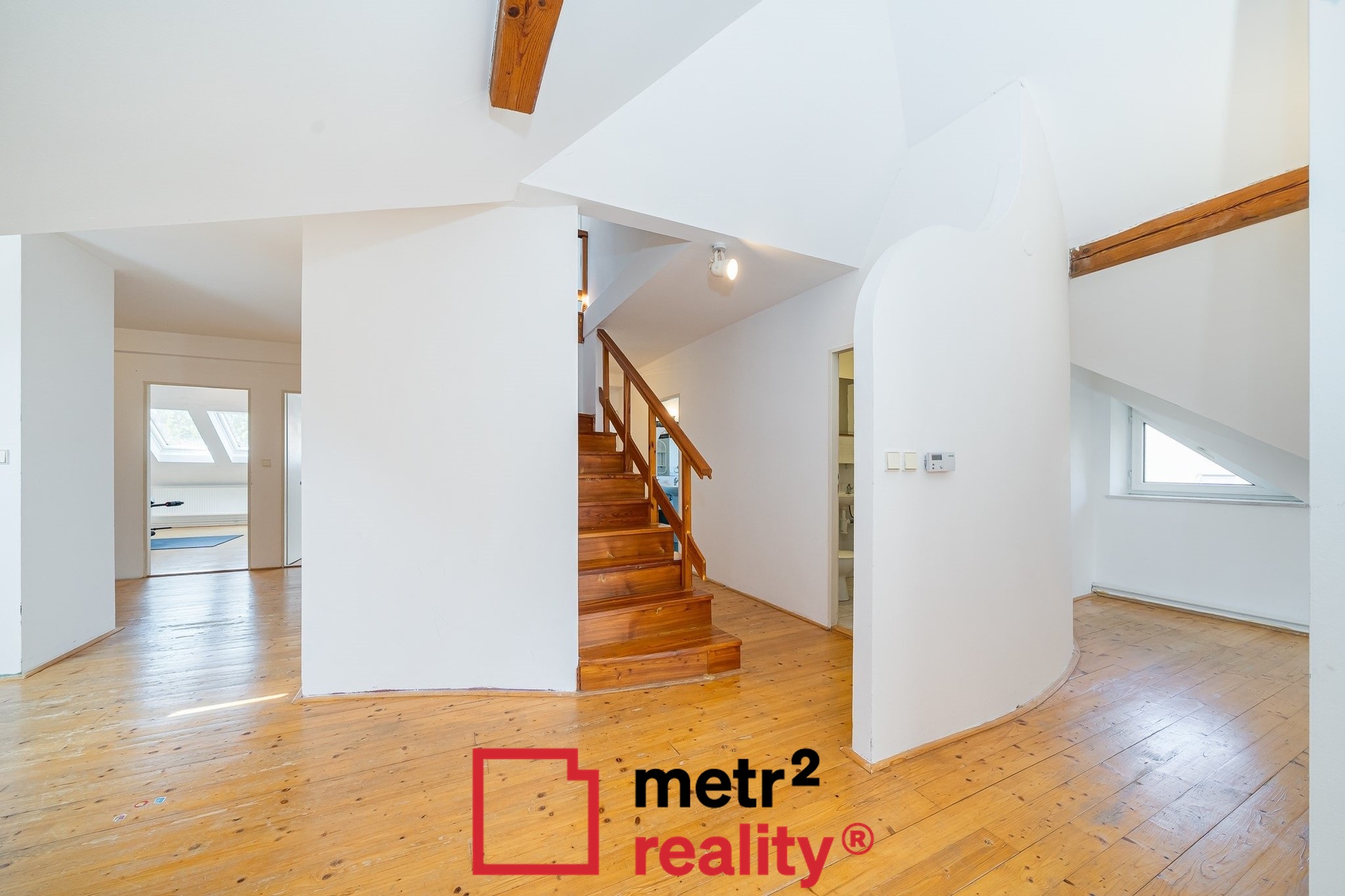 - V patře bytu se nachází dvě samostatné ložnice, dále koupelna s vanou a toaletou a úložné půdní prostory s možností adaptace na další pokoj.