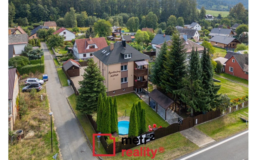 V exkluzivním zastoupení majitelů vám představujeme nemovitost, která na trhu zůstává spíše výjimkou než pravidlem. Stylový apartmánový dům v srdci Jeseníků, zasazený do klidné části Rejhotice, nabízí jedinečné propojení soukromí, horské atmosféry a stabilního výnosu. Na pozemku o celkové výměře 917 m² se nachází třípodlažní objekt po kompletní a citlivě provedené rekonstrukci v roce 2021. Výsledkem je prostor, který splňuje nároky moderního horského ubytování a současně si zachovává přirozený charakter místa. Nemovitost tvoří sedm samostatných kompletně vybavených apartmánů včetně kuchyněk a sociálního zázemí (1+kk, 2+kk, 3+kk) s celkovou kapacitou až 32 hostů. Každý z nich je koncipován s důrazem na komfort, funkčnost a pocit soukromí. Celek pak doplňuje promyšlené zázemí, které významně zvyšuje atraktivitu pro klientelu i návratnost investice. K dispozici je privátní wellness zóna pro relaxaci po dni na horách, stylová společenská místnost s kompletním sociálním zázemím a dostatkem prostoru pro setkávání, dětský koutek i venkovní bazén, který rozšiřuje využití nemovitosti i mimo zimní sezónu. Samozřejmostí je dostatek parkovacích míst až pro 8 osobních vozidel, pergola s venkovním posezením a praktická garáž s dílnou. Technologické řešení domu reflektuje současné požadavky na efektivní provoz – tepelné čerpadlo (voda-vzduch), kvalitní zateplení objektu a trojskla zajišťují nízké náklady při zachování vysokého uživatelského standardu. Zásadní přidanou hodnotou je lokalita. Bezprostřední blízkost vyhledávaných lyžařských areálů (Kouty nad Desnou, Červenohorské sedlo, Přemyslov) a celoroční turistické infrastruktury zajišťuje stabilní obsazenost napříč sezónami a činí z nemovitosti dlouhodobě udržitelnou investici. Při plném obsazení objektu včetně v současné době privátně využívaného podkrovního apartmánu 3+kk generují majitelé roční obrat ve výši až 1 mil. korun s možností potenciálního růstu. Nemovitost je bez právních omezení a připravena k okamžitému převzetí i plynulému pokračování provozu. V případě zájmu rádi zajistíme profesionální správu objektu. Tato nabídka není jen o parametrech. Je o místě, atmosféře a příležitosti vlastnit fungující horský projekt s charakterem a zajímavým potenciálem možného růstu. Pro více informací a sjednání osobní prohlídky nás prosím neváhejte kontaktovat.