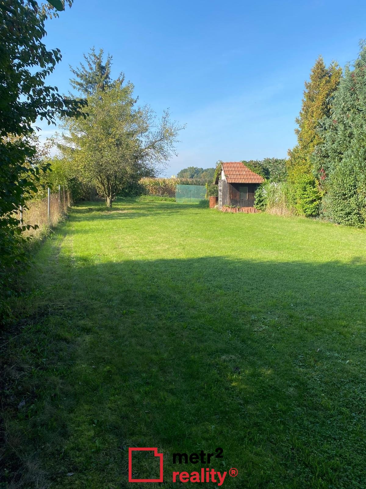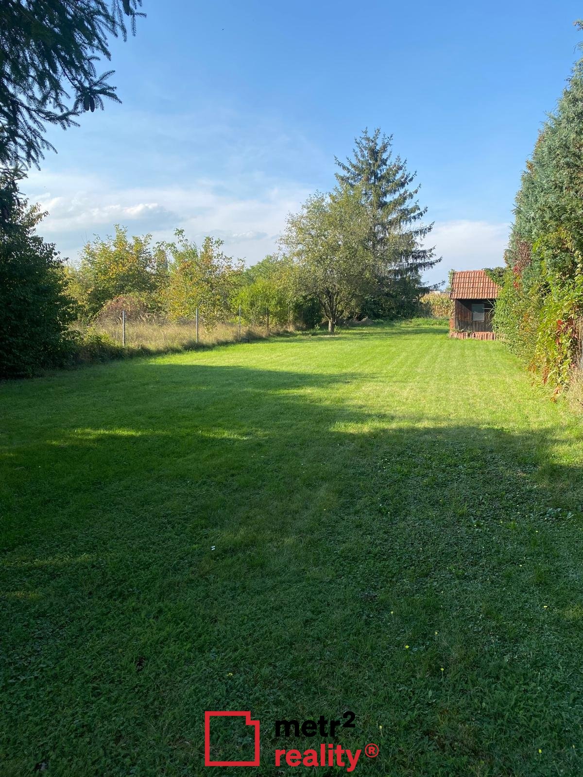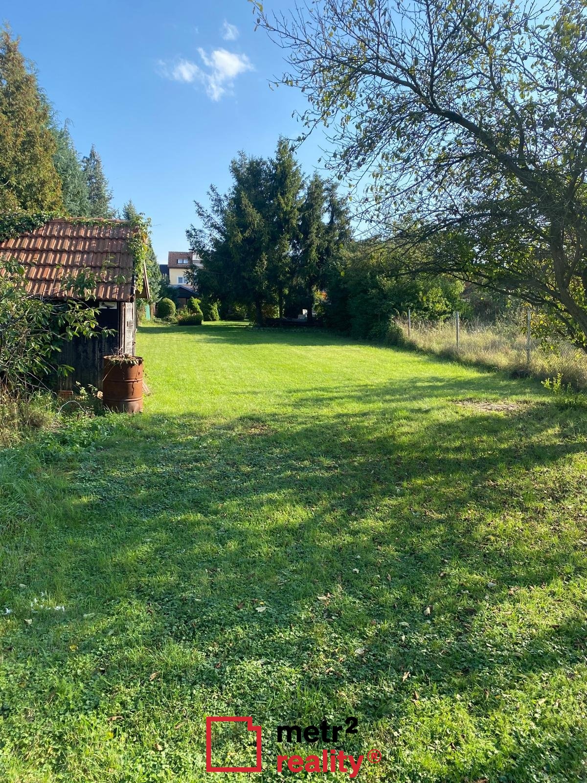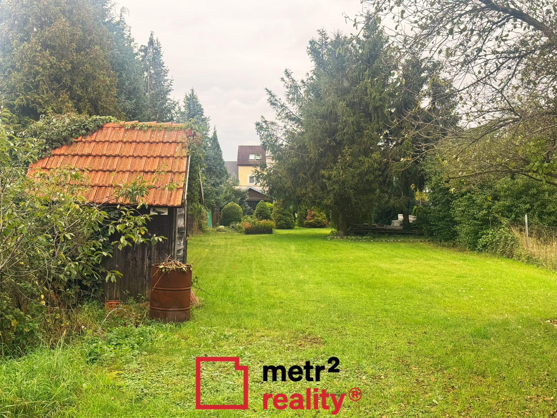 Pozemek je pravidelně udržovaný s výsadbou vzrostlé zeleně.