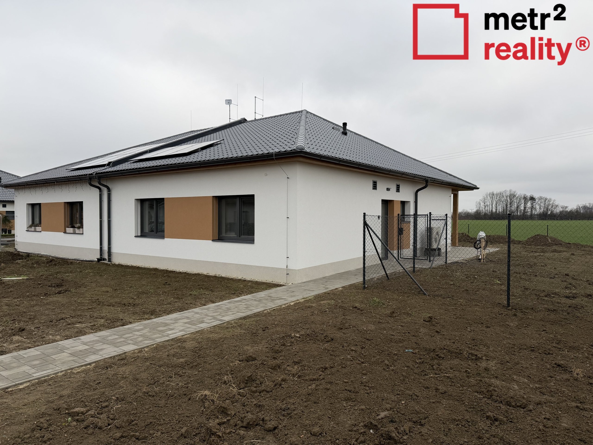Nabízíme Vám k pronájmu moderní novostavbu zděného přízemního pasivního rodinného domu v obci Hnojice. Dispozice domu je 4+kk s celkovou užitnou plochou 97 m2 a pozemkem o celkové výměře 633 m2. Dům v řadové zástavbě je nepodsklepený. vytápění je řešeno pomocí teplovodního systému, který obsahuje tepelné čerpadlo typu vzduch-voda, které zajišťuje pokrytí tepelných ztrát objektu. Součástí tepelného čerpadla je i zásobník na TUV. Ve všech místnostech RD je podlahové vytápění, které je v koupelně doplněno o topný žebřík. Součástí systému je také centrální rekuperační jednotka, jež zajišťuje přívod čerstvého vzduchu do obytných místností a odvod znehodnoceného (odpadního) vzduchu z koupelny, WC a kuchyně. FVE elektrárna, 3 panely na střeše, jednofázový střídač. Na zahradě je umístěna retenční podzemní nádrž pro sběr a následné využití dešťové vody s kapacitou 8 m3. Dešťová voda je využita na splachování WC a zálivku zahrady. Dům je napojen na vodu z lokálního zdroje, kanalizace obecní. Komfortní parkování pro dvě vozidla před domem. Cena 30.000 Kč měsíčně je uvedena bez inkasa. Dům je volný ihned. PENB skupiny A.