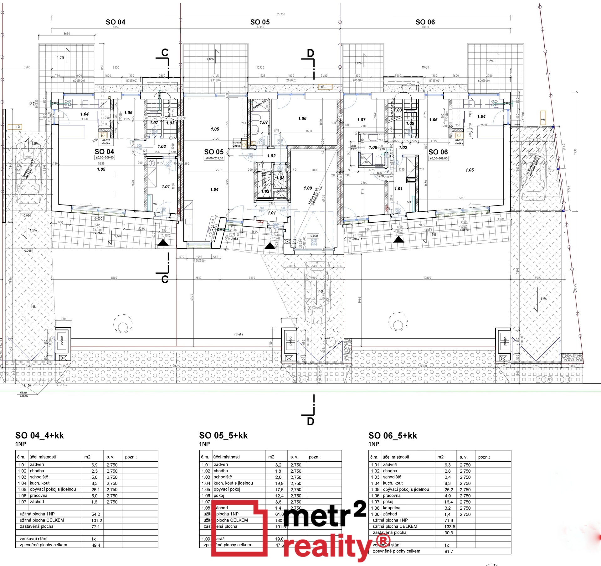 Výhradní prodej krajního rohového rodiného domu s označením SO 04 o dispozici 4+kk se zastřešeným stání pro automobil. Užitná plocha domu je 101,2 m2. Výměra pozemku 392 m2. v přízemí domu se nachází vstupní chodba, prostorný obývací pokoj s kuchyňským koutem (lze dispozičně rozdělit na jednotlivé místnosti), jídelnou a WC. V patře jsou pak 3 samostatné pokoje a koupelna s WC. Dům je součásní nového projektu šesti rodinných domů v obci Nemilany, na ulici Návětrná. Jedná se o dva trojdomy - dva domy vnitřní, čtyři domy krajní rohové. Pozemky o výměrách od 354 do 518 m2. Dispozičně jsou domy navrženy od 4+kk do 6+kk, užitné plochy domů od 101,2 do 150,2 m2. Jedná se o dvoupodlažní zděné domy (zdivo porotherm), domy mají sedlové střechy, plastová okna s trojskly. V přední části pozemků bude ve standardním provedení gabionové oplocení, vytápění domů bude zajišťovat podlahové vytápění napojené na elektrokotel, nebo si může klient zvolit variantu elektrického vytápění Heatflow. Domy budou napojeny na obecní vodovod i kanalizaci. Součástí každého domu je garáž, nebo zasřešený přístřešek na automobil. Výstavba domů byla právě zahájena, termín dokončení domů je plánován na jaro 2018.