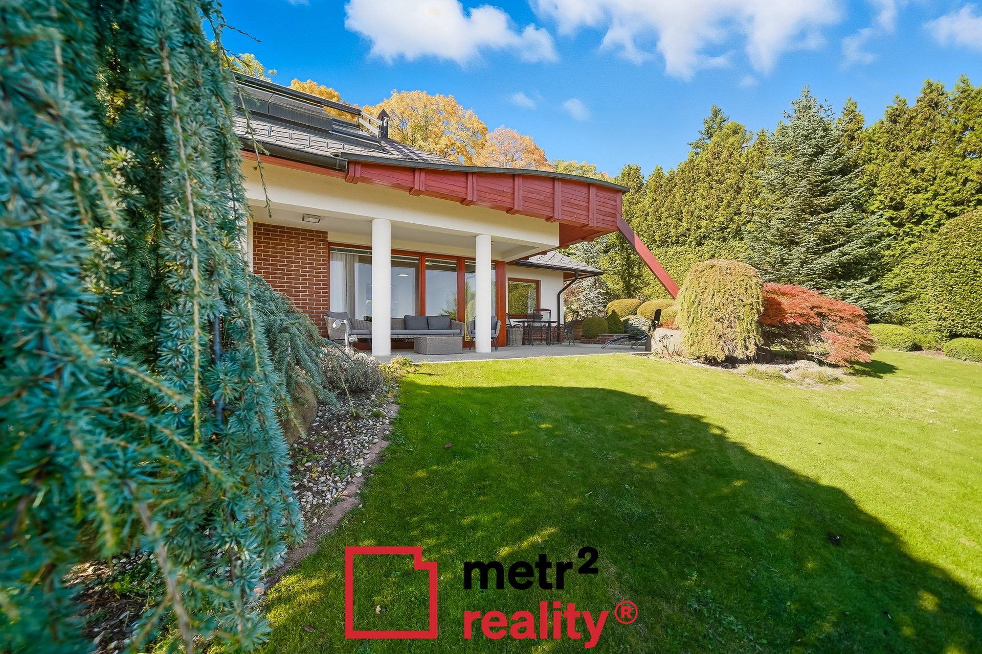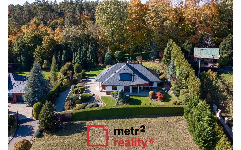 Jedinečná stavba zasazená do okrasné zahrady na okraji lesa – světlé interiéry, velkorysá dispozice a výhled, který vás každý den potěší. Originální dům s kruhovým schodištěm, velkým posuvným oknem v ložnici a přímým propojením interiéru se zahradou a okolní přírodou.