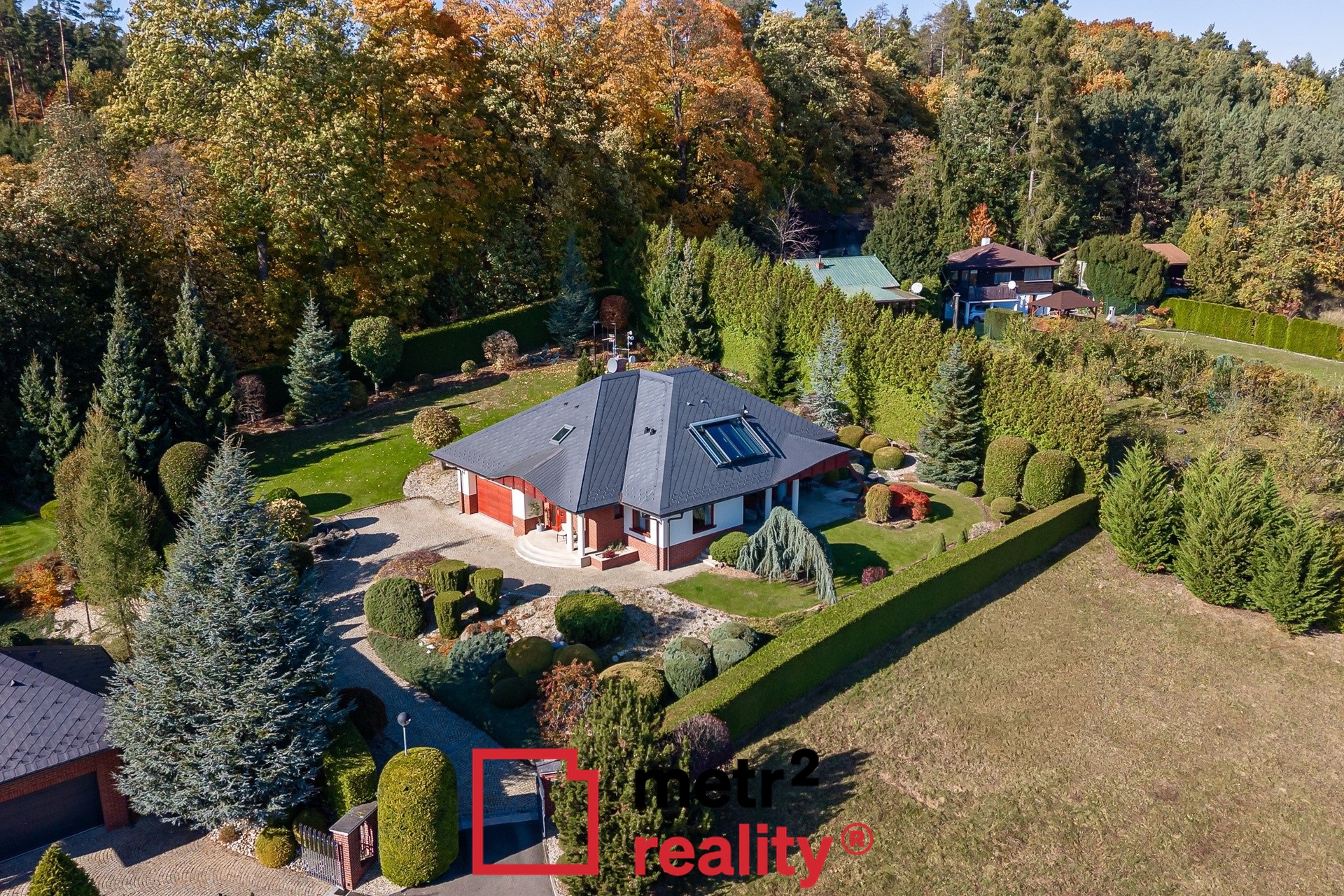 • Dvojgaráž, vjezdová brána i garážová vrata s dálkovým ovládáním, dobíjecí stanice pro 2 elektromobily